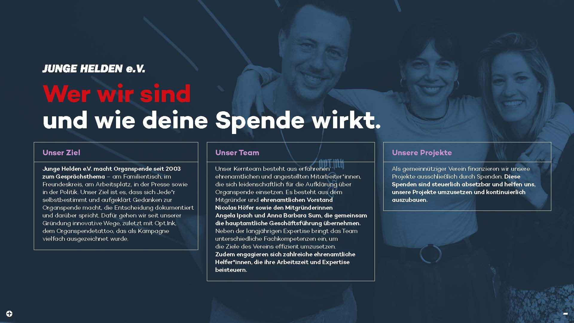 Wir haben zusammengefasst, wofür wir deine Spende einsetzen und wie deine Spende wirkt. Hier kannst du dir das entsprechende Dokument ansehen.